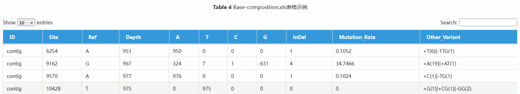 (5) A/T/C/G:支持该处为A/T/C/G碱基的reads数量;