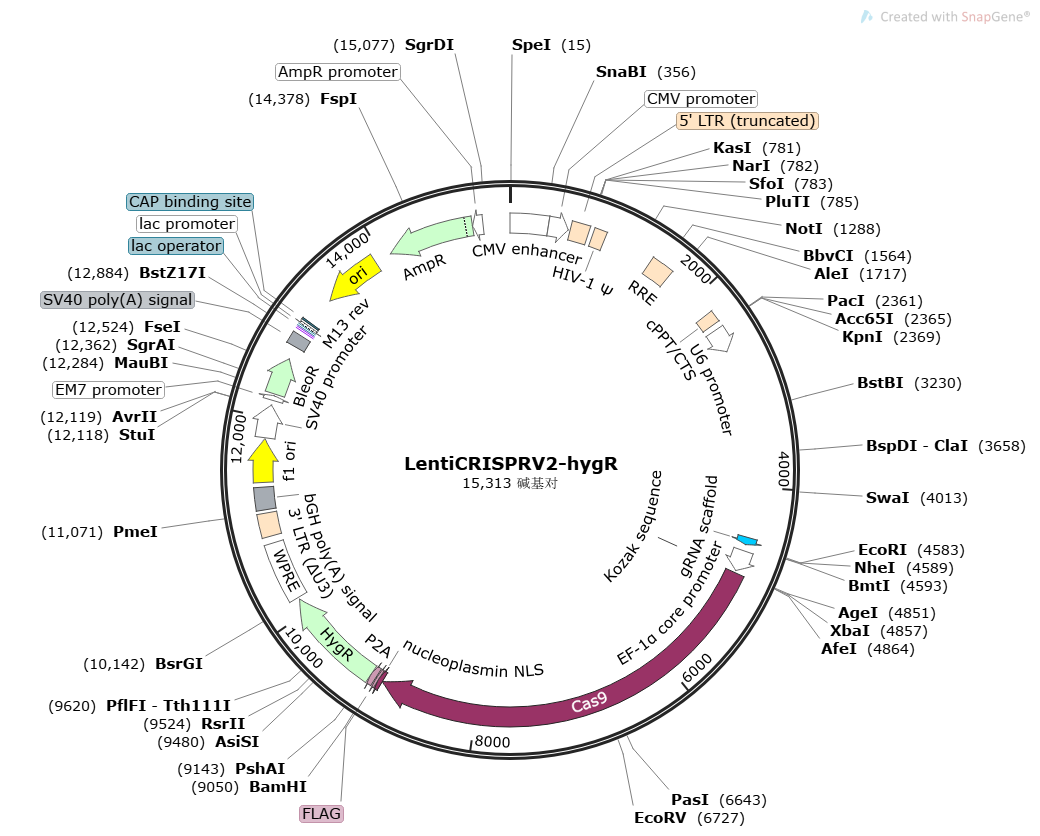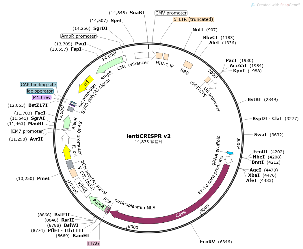 | sgRNA敲除(KO)慢病毒载体 | LentiCRISPR v2 | LentiCRISPR v2 |